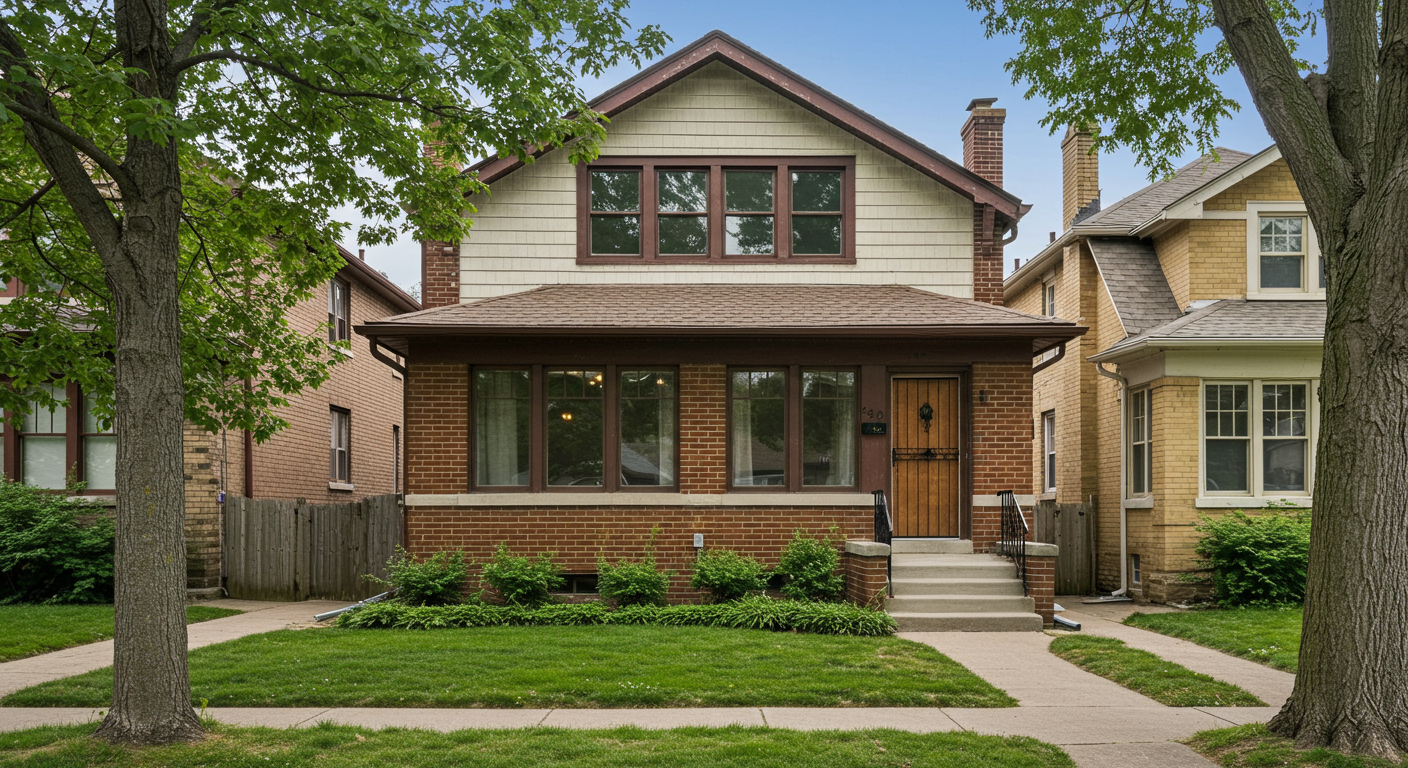A historic Albany Park bungalow, built in 1923. Photo cropped from the original, taken in 2009 by Eric Allix Rogers [CC BY-NC-ND 2.0], via Flickr.