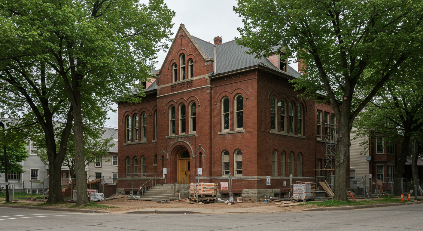 Avondale School just at the end of construction, in 1897. This school still stands at Wellington and Sawyer: it functions as Avondale-Logandale Elementary School.