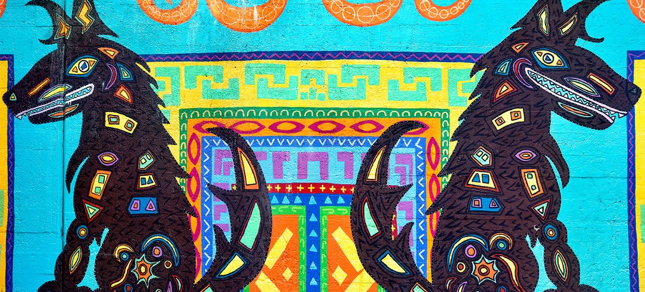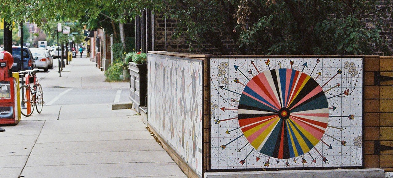 Mural by Tony Passero on Damen Avenue at the 606 trail in Bucktown. Photo cropped from the original, taken in 2019 by Terence Faircloth [CC BY-NC-ND 2.0], via Flickr.