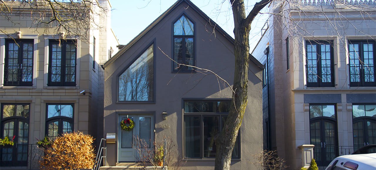 The home at 1825 N Wolcott Ave in Bucktown Chicago. Photo cropped from the original, taken in 2012 by Daniel X. O’Neil [CC BY 2.0], via Flickr.