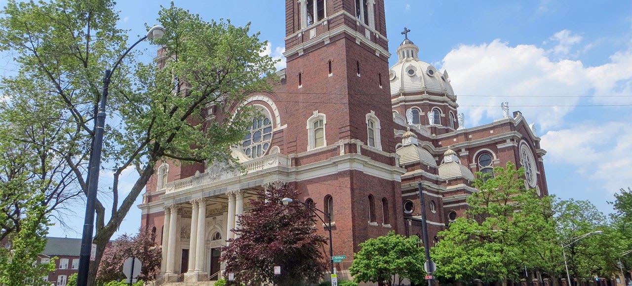 St. Mary of the Angels Church, a historic church of Roman Catholic Archdiocese of Chicago, built in 1899. Photo cropped from the original, taken in 2018 by David Wilson [CC BY 2.0], via Flickr.