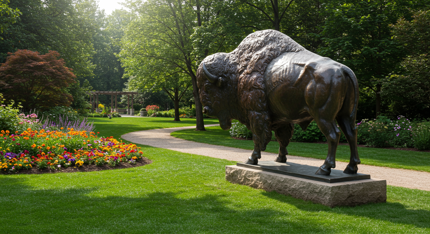 Edward Kemeys’ Bronze Bison Sculpture in the Humboldt Park Formal Garden