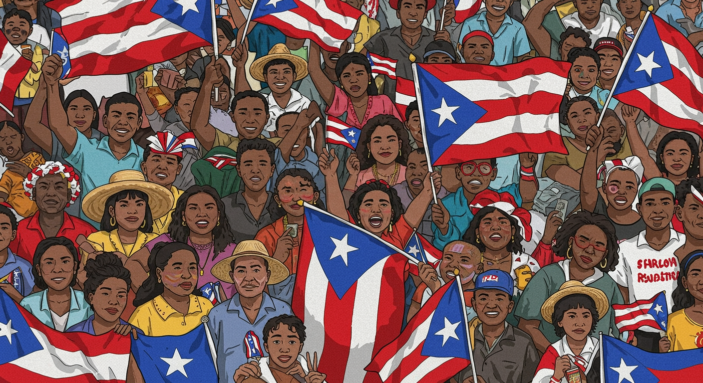 One of the gateway flags over Paseo Boricua (loosely translated as “Boricua (Puerto Rican) Promenade”), a six block section of Division Street in the Humboldt Park community in Chicago. The two flags were dedicated to the community in 1995. Photo by Richie Diesterheft via Flickr, CC BY-SA 2.0.
