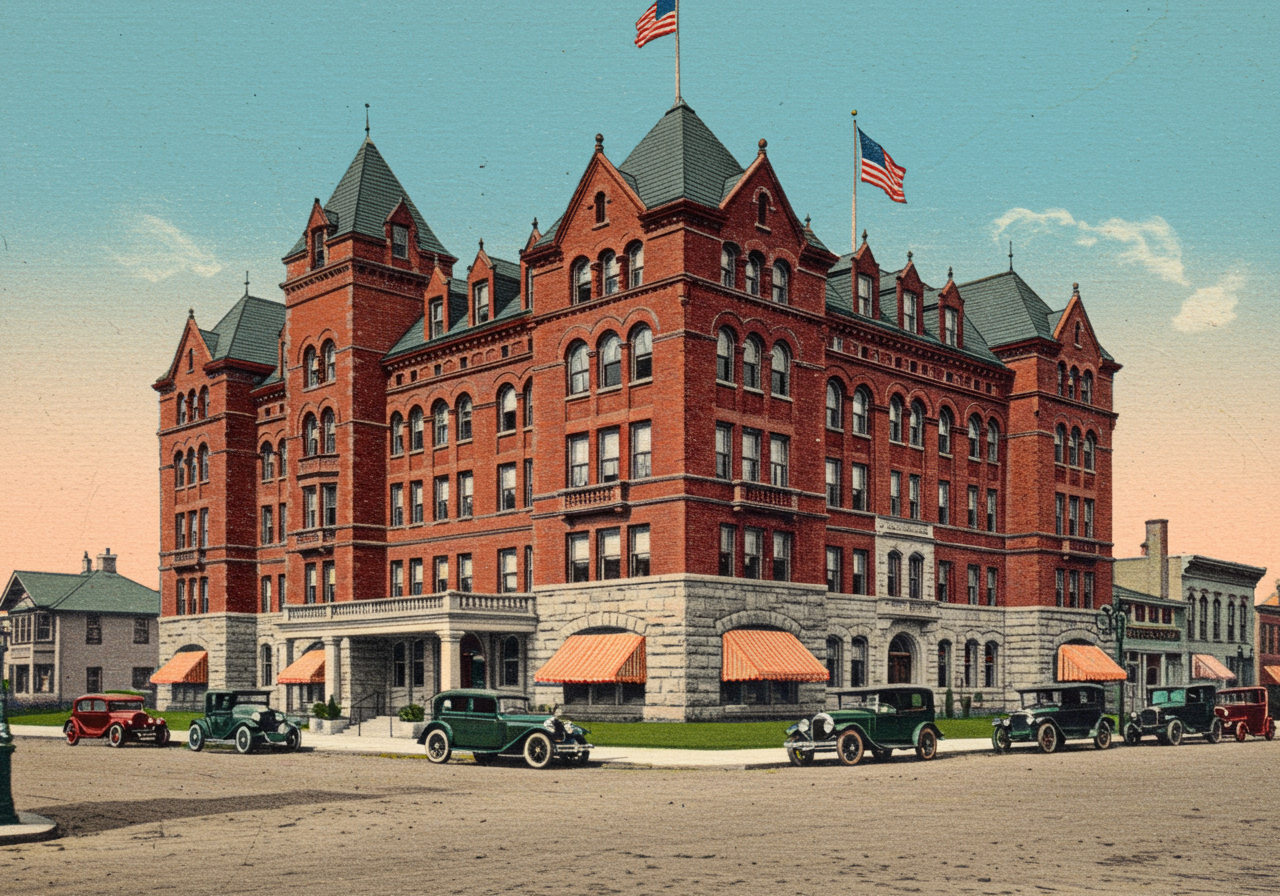 An image of the historic Kenwood Hotel, used on a postcard circa 1900. View the other side of the postcard here.