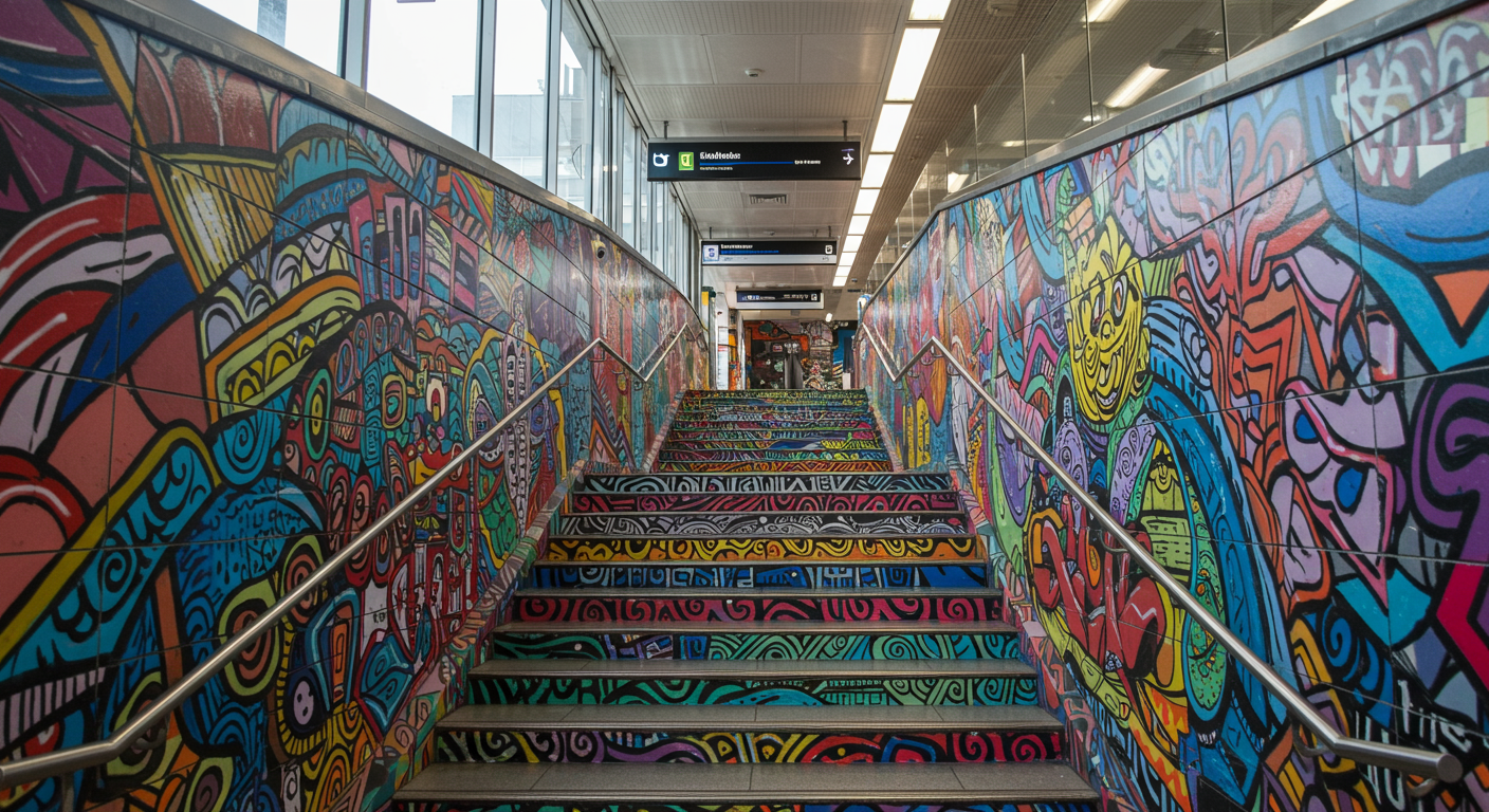 The 18th Street El Pink Line stop stairway. Photo cropped from the original, taken in 2007 by Richie Diesterheft [CC BY 2.0], via Flickr.