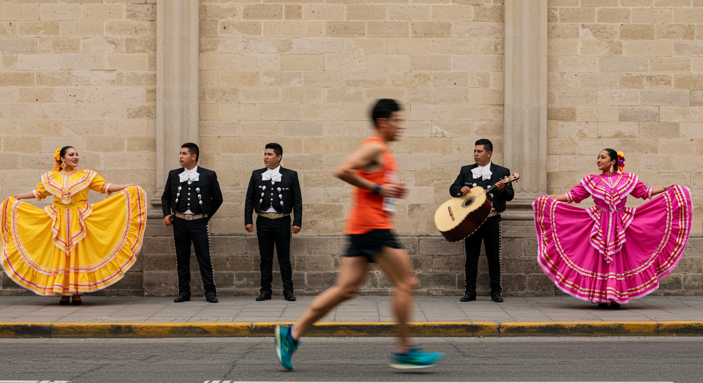 Dancing during the Chicago Marathon, an annual tradition. Photo cropped from the original, taken in 2006 by Señor Codo, via Wikimedia Commons.