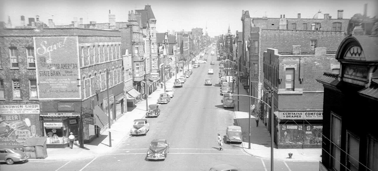 A Pilsen street scene in 1951. Photo cropped from the original, by Joe+Jeanette Archie [CC BY 2.0], via Flickr.