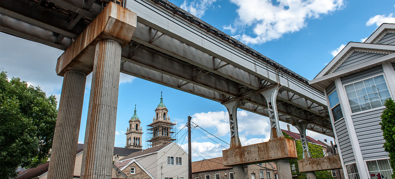 A cityscape view under the El. Photo cropped from the original, by Brian Lauer [CC BY 2.0], via Flickr.